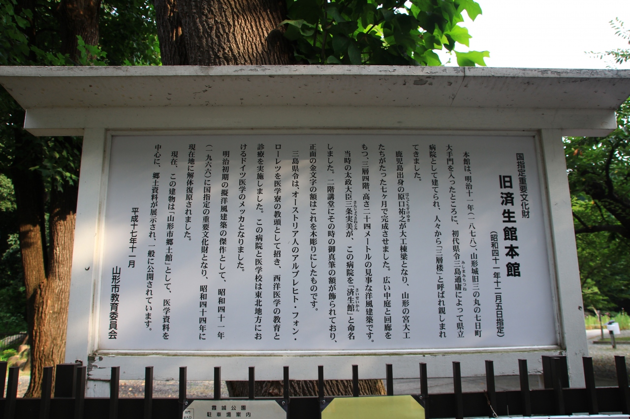 山形市の霞城公園(山形城跡)の敷地内にある博物館です。入場無料で郷土の簡単な文物を展示してあるだけですが、重要なのはその建物で、国の重要文化財に指定されています。