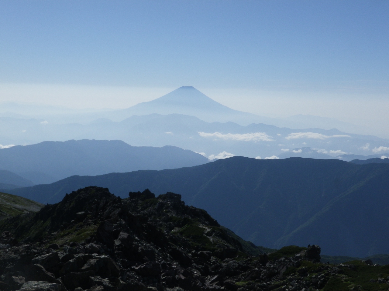 一番標高が高い、3141mの悪沢岳(東岳)と中岳(3083.2m)に千枚岳(2879.8m)の3峰が荒川三山で3峰共頂上からの眺めが素晴らしいです、そばに赤石岳・塩見岳が見え、遠くに富士山が見えます、登山道はちょっと危険な場所がありますが殆どは歩きやすいです、又、登山道沿いに多くの高山植物が見られます。