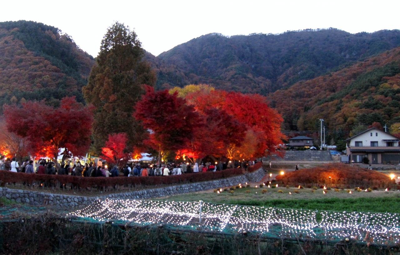 約60本の巨木の紅葉があるという「もみじ回廊」はライトアップされ