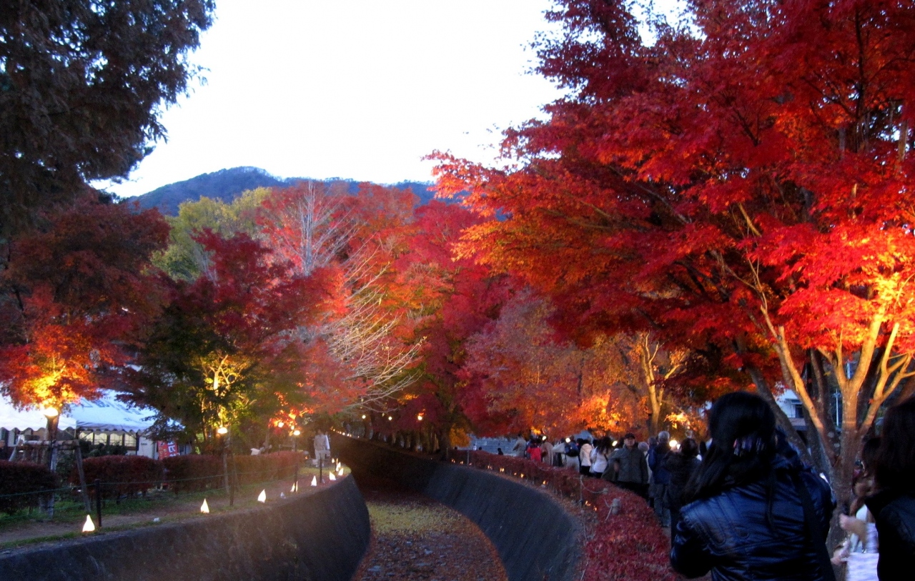 ライトアップされた「河口湖もみじ回廊」が美しい