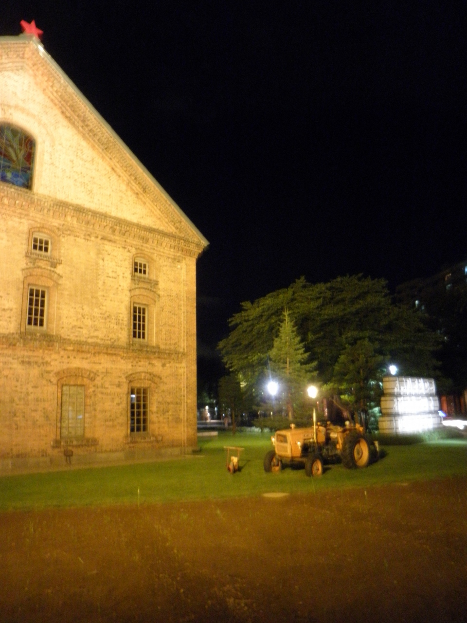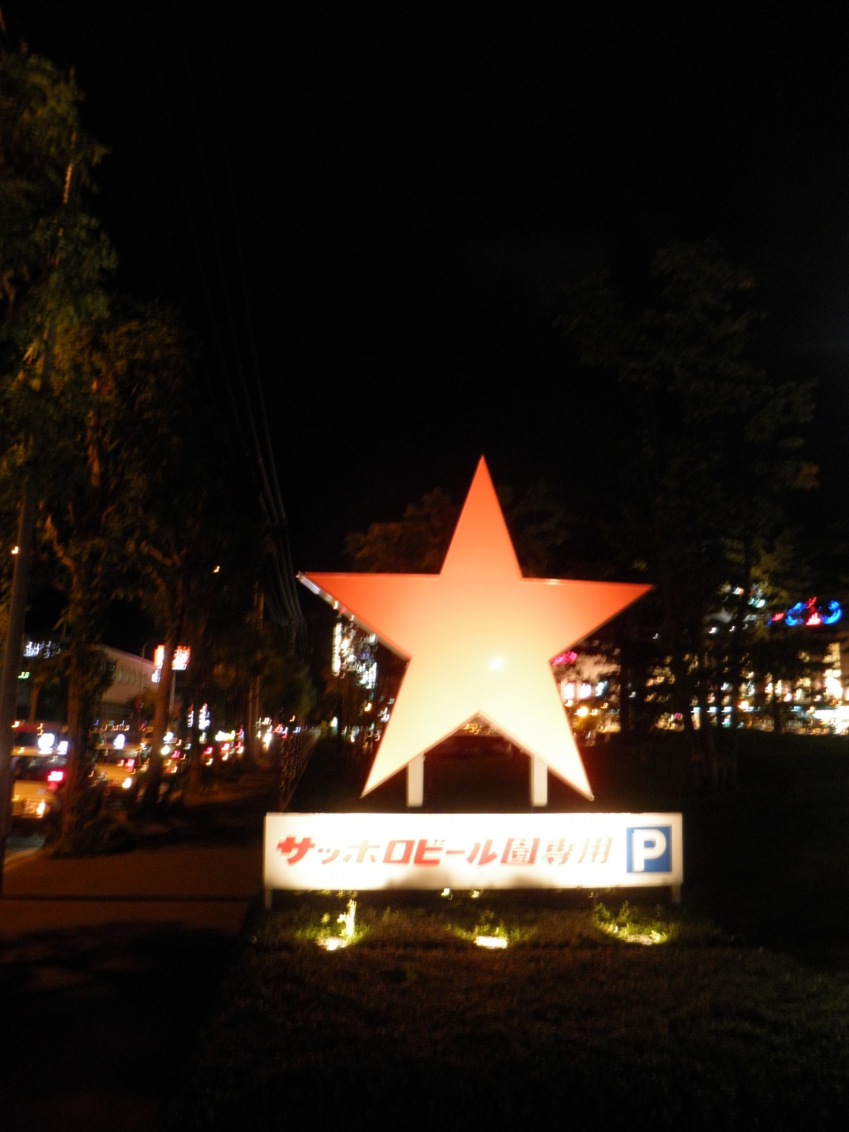 札幌駅からだいぶ東側にあるサッポロビール園に久しぶりに行きました。 8月の観光シーズンのためか、夜でも多くの観光客が訪れていました。 大きな赤い星が入り口においてあり、そこから入っていくと、レンガ造りの建物があり、その前にトラクターがおいてあり記念撮影をしました。 麦やホップが植えてあり、周囲を散策するのもいいです。
