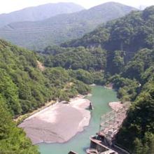 静岡駅から運行初日の畑薙第一ダム行きの直行バスは、続行便が出て2台で静岡駅を出発し、車掌さんに料金3,000円を払い、帰りの利用日の19日を伝えておきましたが、結果的に19日は台風の土砂崩れで運休になりました。バスは安倍川を上流に遡っていき、1時間ほど走った横沢でトイレ休憩があり、谷を詰めてカーブしながら山を上って富士見峠で尾根の上に出ると、山の奥に食事処やパン屋が営業しています。山を下って大井川にかかる井川ダムの堰堤を通って、2時間ぐらいで二度目の休憩の井川駅前に停まります。
