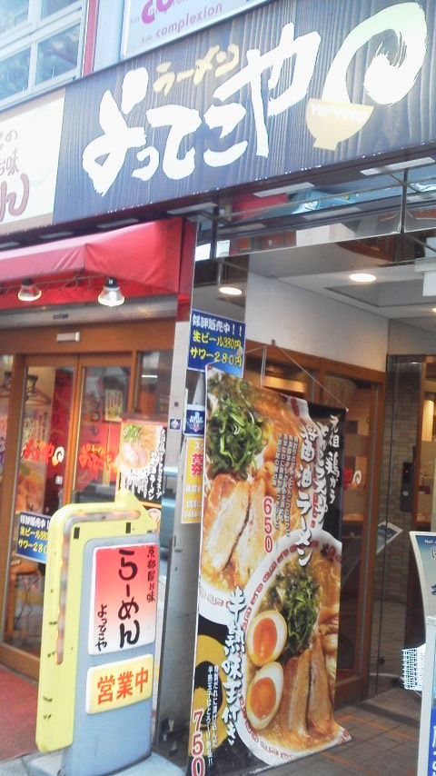 藤沢駅南側方面を歩いてすぐのところにあるラーメン屋さんがここ「よってこや 藤沢店」。京都の伝統的な醤油とんこつラーメンをベースにした「鶏ガラとんこつラーメン」が特徴のようで、コクがあるのに後味さっぱりとした味ということで、試してみました。結構いい感じの味でたまに食べたくなってしまうものですね。藤沢に行った際にはどうですか。