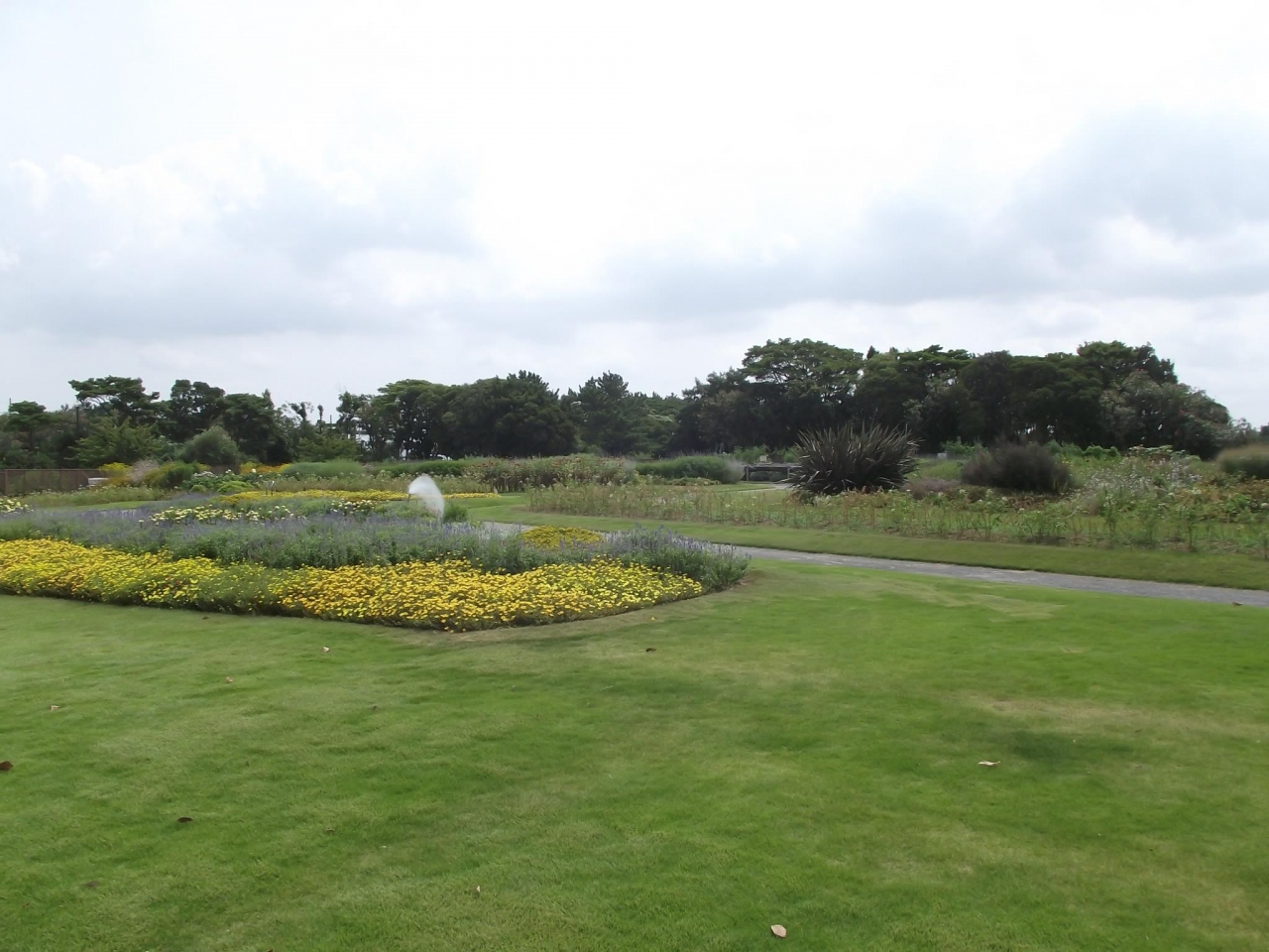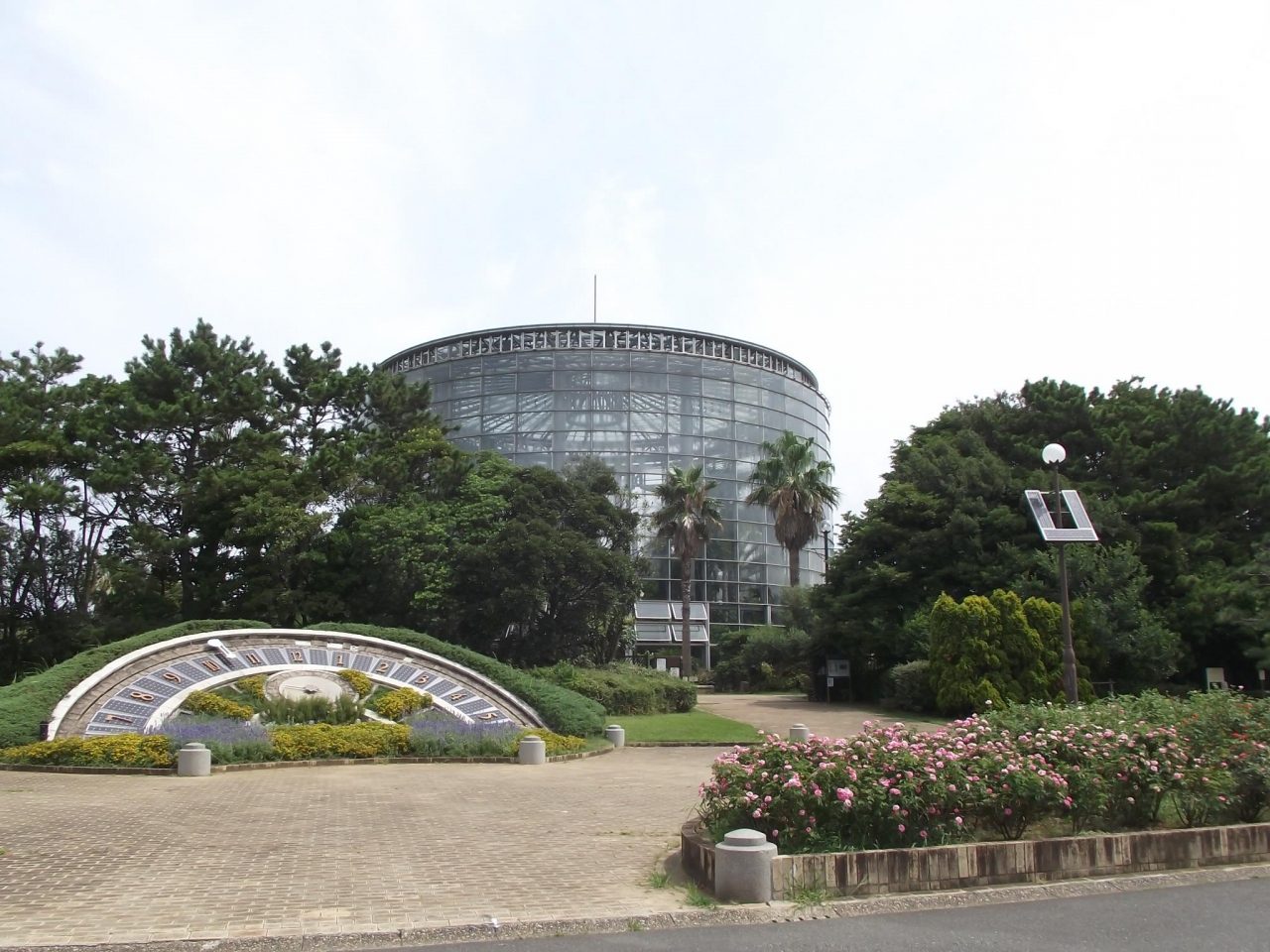 細長い稲毛海浜公園のほぼ中央にある高い大きな温室があるところです。