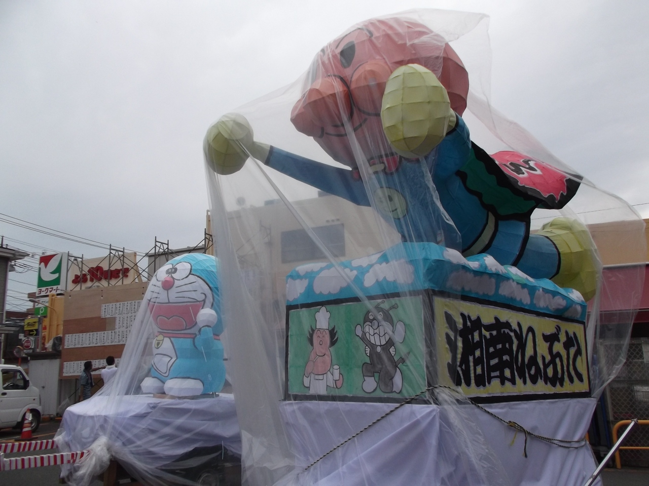 本番前に現地入りしましたら、駅付近の駐車場広場では屋台の仕込み準備が大忙し、待機場の大太鼓が鳴り響き、その周りを浴衣姿の子供達がはしゃいでいました。
