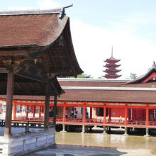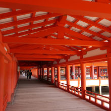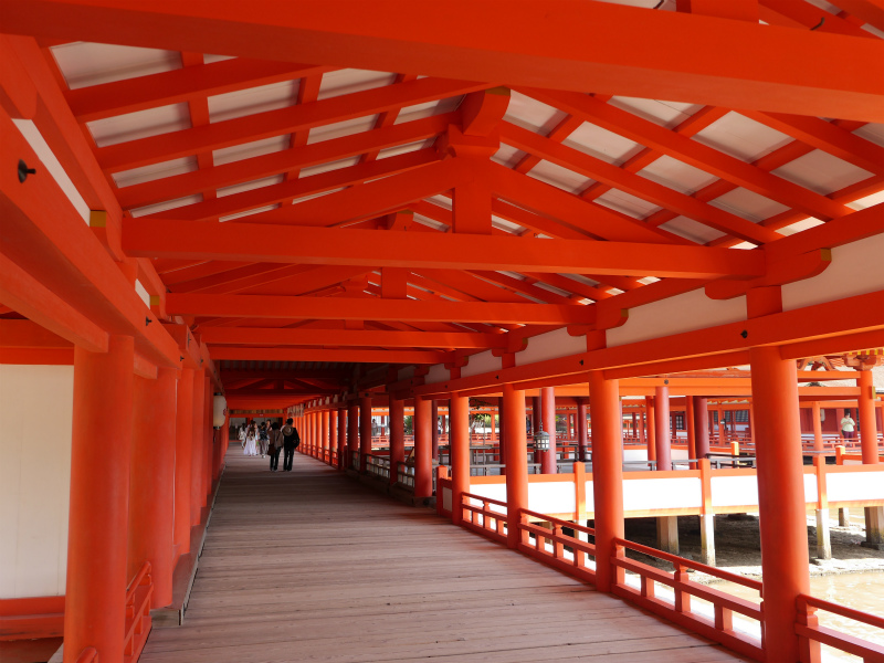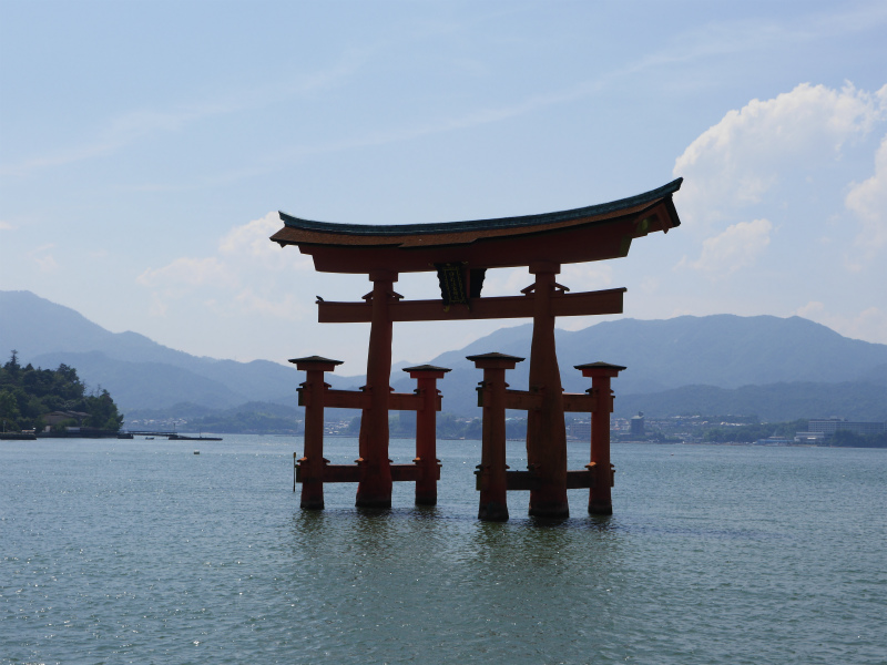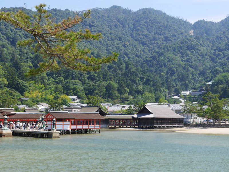 広島から電車と船を乗り継ぎ1時間弱で宮島に到着します。その代表する観光スポットが「厳島神社」です。海に建つ大鳥居は干潮時は歩いて渡れ、豪華な建築の社殿や朱塗りの柱が優美な廻廊は見応え十分です。他にも能舞台や五重塔などもあります。
