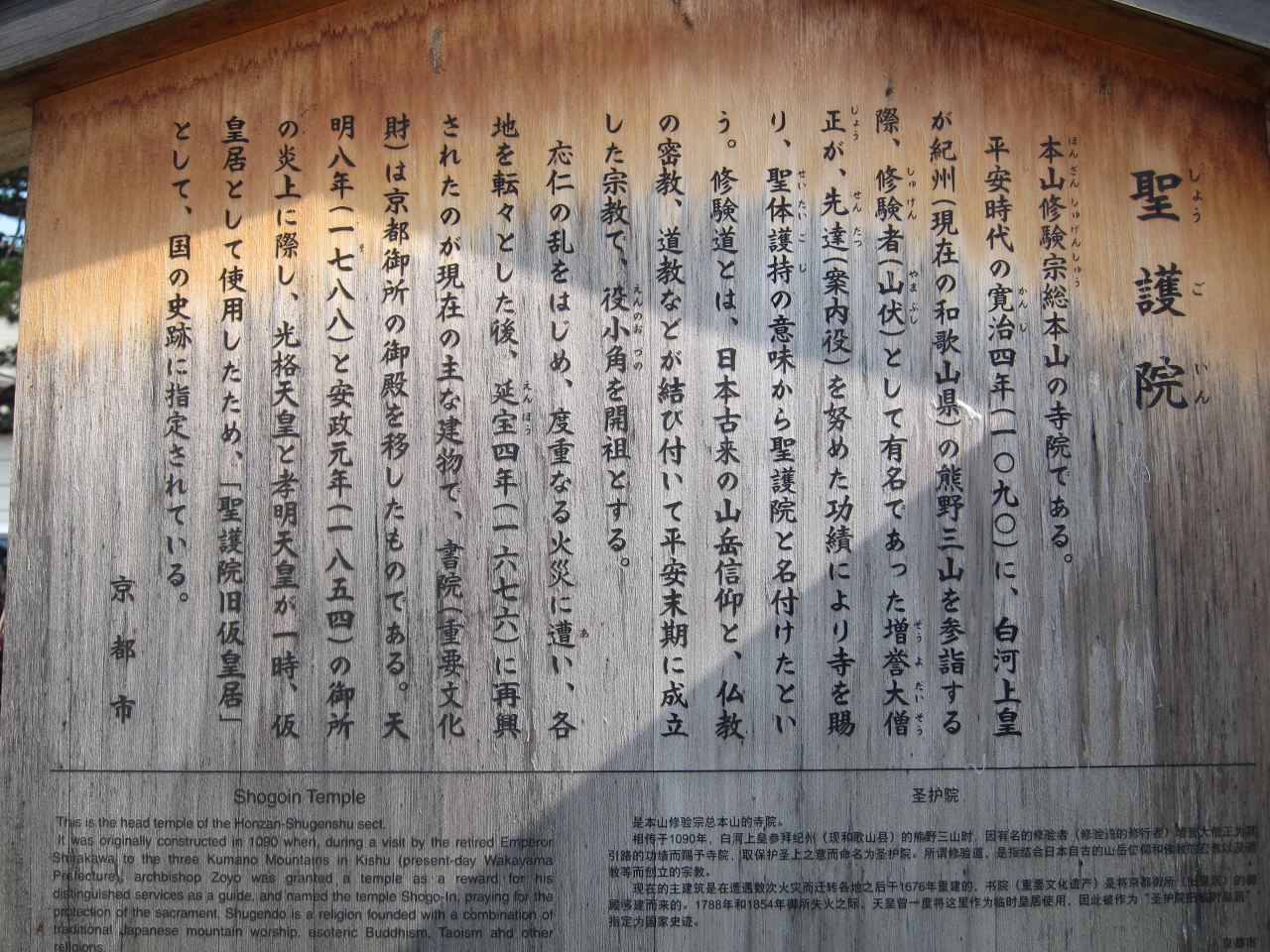 聖護院と言えば八つ橋で有名ですが、聖護院門跡は東大路、丸太町から黒谷に向ったところにある山伏の寺です。山伏の寺だけあり、朝にはほら貝の音が聞こえて来ます。節分祭では山伏による法要、豆まき、大護摩供、古札焼きが行われます。普段は観光客も殆どいない静かなお寺です。