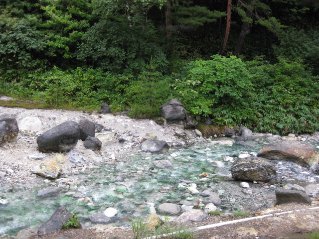 早朝に行ったので人も少なく、のんびりとした風景でした。軽い坂を登っていくと、山の上流の方から源泉が溢れて川となっておりてきます。河原の水が生ぬるいです。ちょっと頑張って露天風呂まで行く場合は、各宿に割引券が置いてあるのでゲットしてから行ってください。