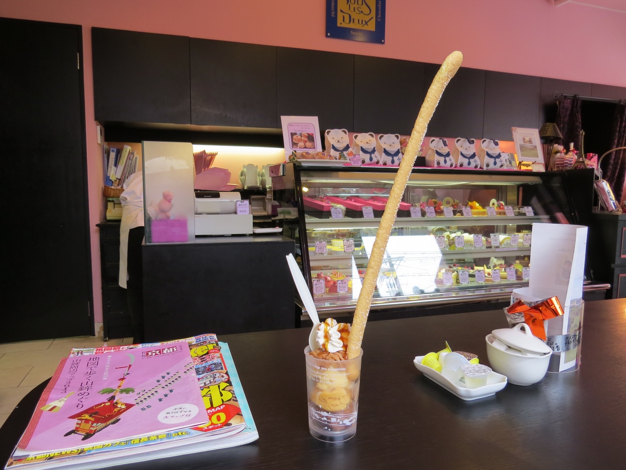 祇園祭の巡行当日と宵山3日間の4日間だけ、新町通にあるスィーツのお店、トゥレドゥーで販売されるパフェです。鉾の真木を模した棒状のクッキーが真ん中に刺さっていてとてもユニーク。私がオーダーしたのはマロン(3種類あります)。クッキーはサクサクで結構ボリュームがあります。アイスクリームも美味でした。宵山を楽しみながら来年も味わいたいと思います。