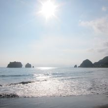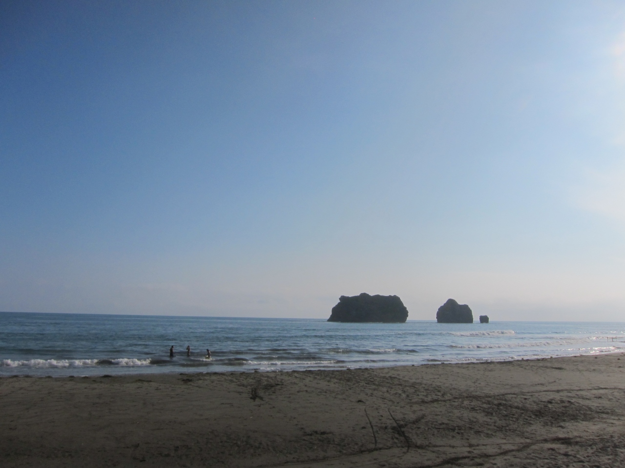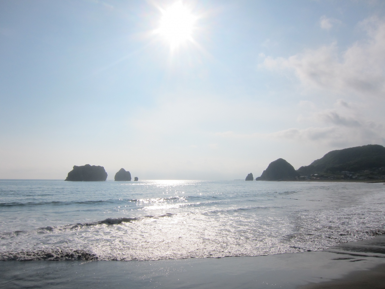 様似の海水浴場です。様似駅や町役場のある中心部からは2kmほど浦河寄り(西)に離れていますが、比較的整備された海水浴場です。親子岩の眺めがよく、夕陽の時などはきれいです。付近は海水浴場のほか、キャンプ場なども整備された公園となっており、広い無料の駐車場もあります。管理事務所的なセンターハウスがあり、シャワーや男女別の更衣室、無料のコインロッカーがありました。