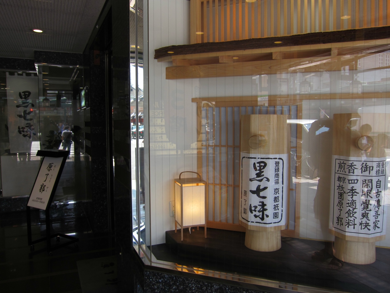 黒七味で有名な原了郭は祇園商店街、鍵善良房の並びにあります。小さな店ですが、ここの七味は一味違い病みつきになります。親子丼、そば、うどん等に合います。値段も手ごろで人に配るのにもいいでしょう。ただし、最近は東京の百貨店でも扱っています。