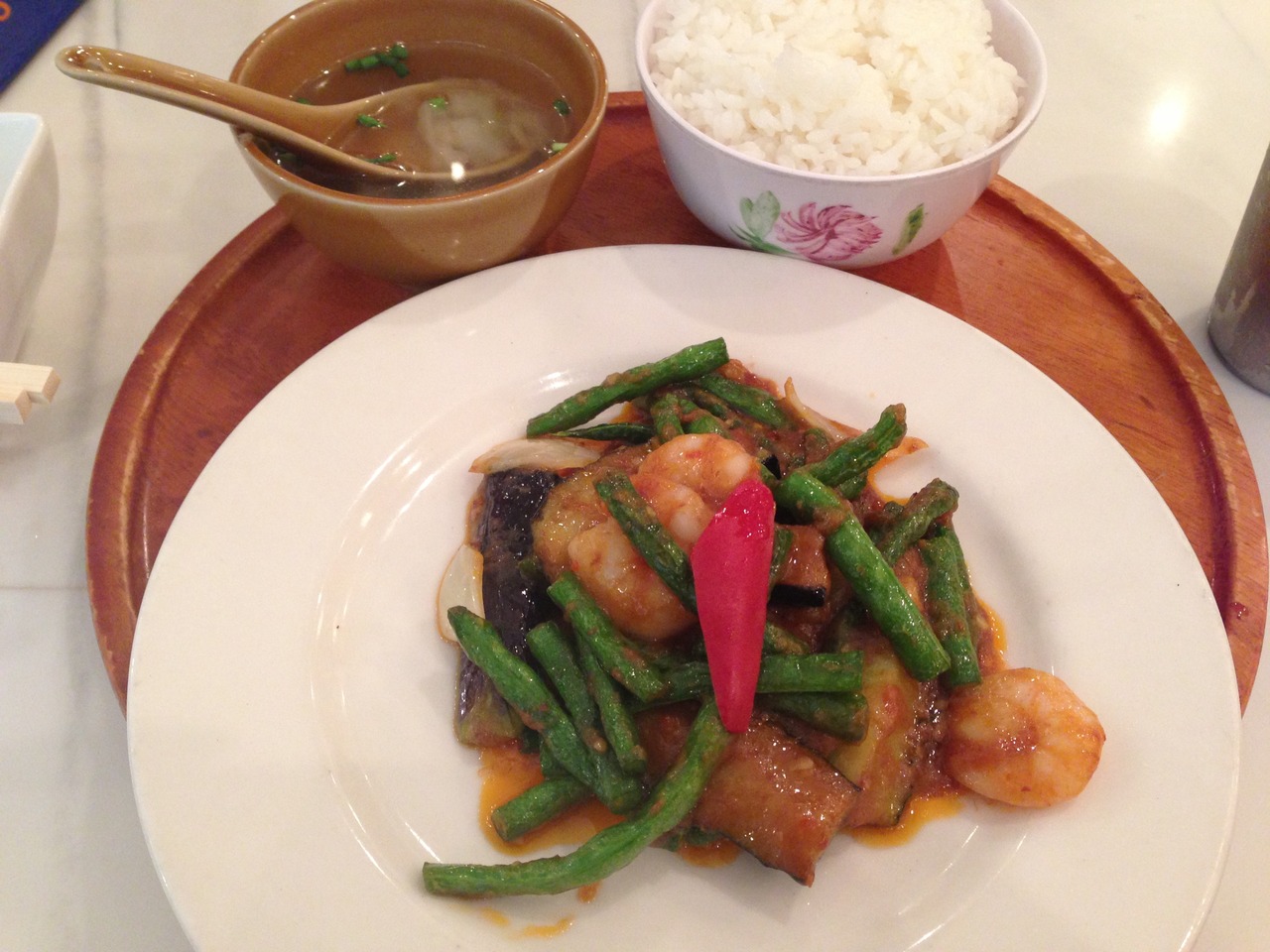 アジアンな味付けは辛すぎず、茄子やインゲンが多めで野菜も摂れ美味しかったです。
