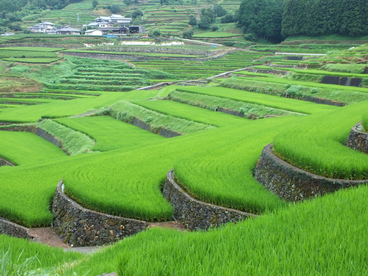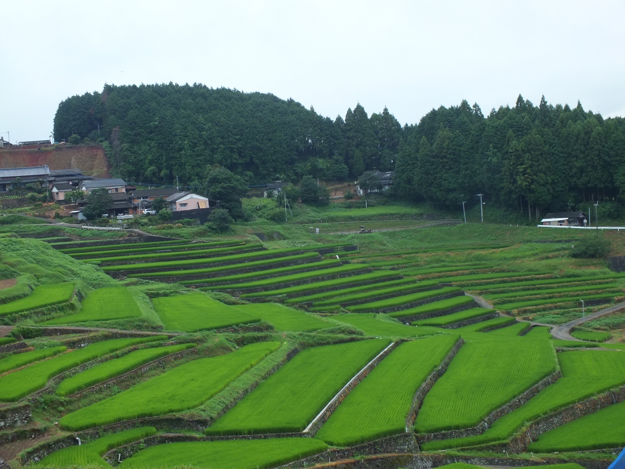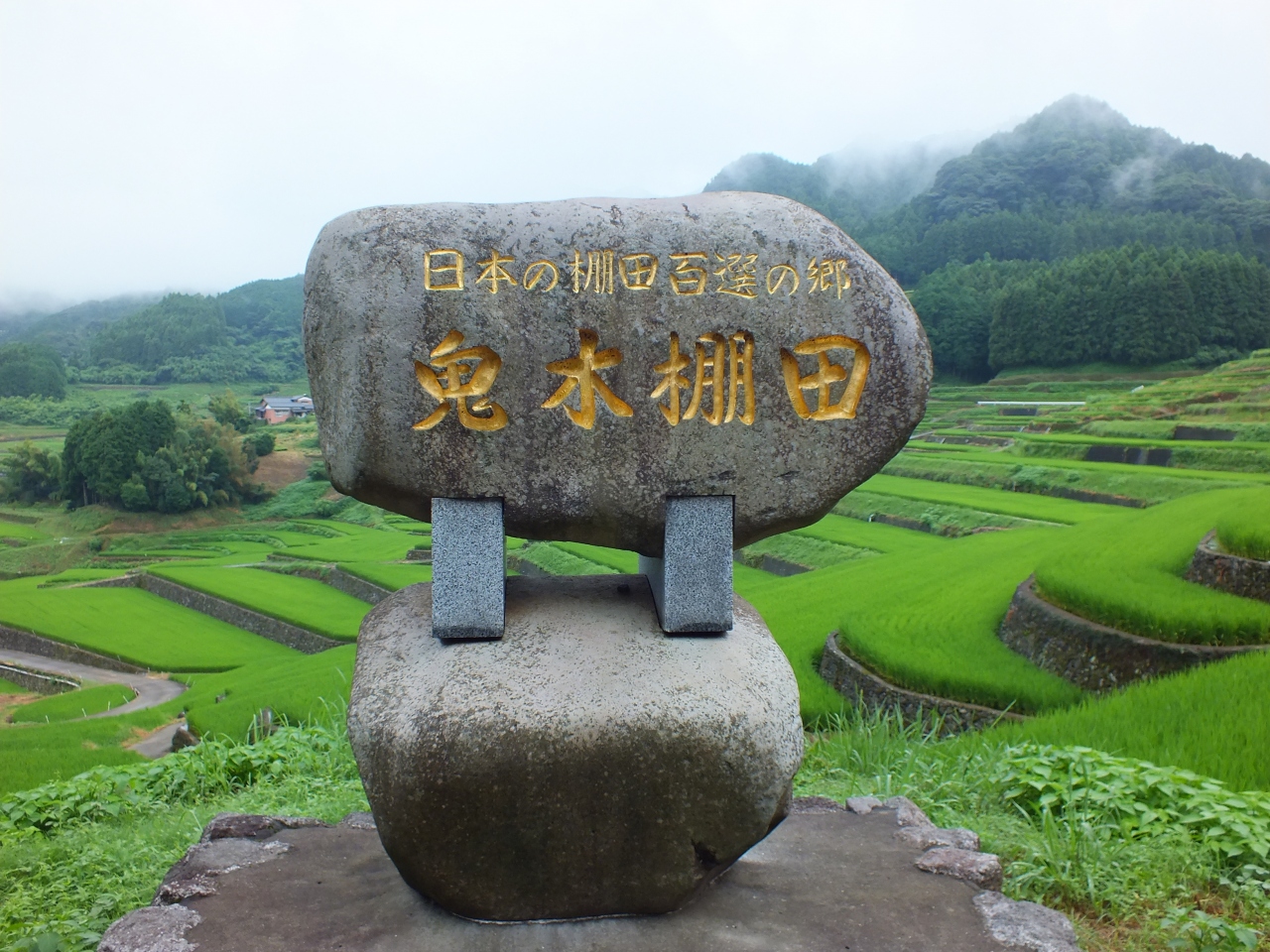 日本の棚田百選に認定されている鬼木棚田。たまたま近くを通りかかり、標識を見かけて立ち寄ってみました。緑がとても美しく、すごく癒される風景でした。展望所が作られていましたが、そこにたどりつくまでの道幅は狭く、車もほんの数台しか停められない場所だったので、込み合ったら困るだろうなぁ、という感じです。