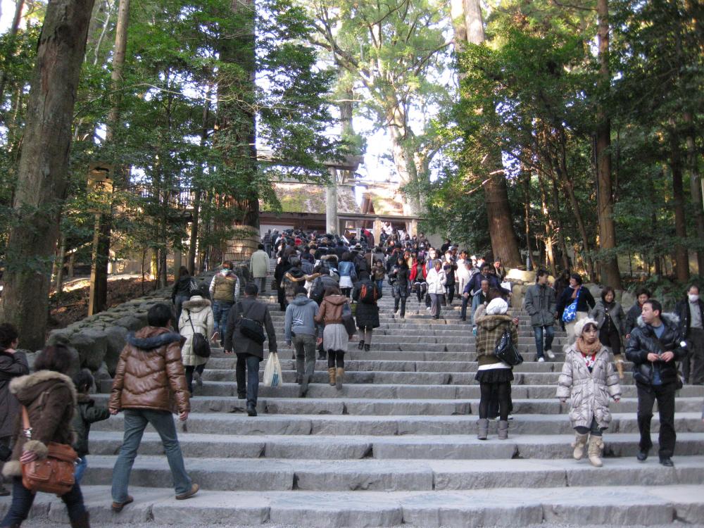 五十鈴川を越えて内宮正宮へ入ります。とにかく凄い人でした。境内にはかなり多くのニワトリが放し飼いにされていました。神鶏と言い神の使いとされているらしいです。内宮は三種の神器の一つの八咫鏡を神体としているらしいです。