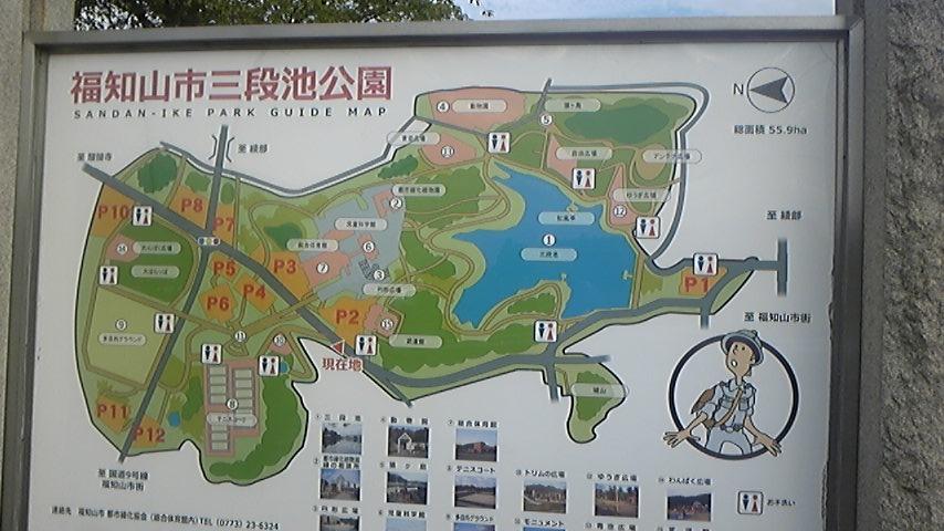 JR福知山駅から「三段池公園」の道路標識に従い、北東方向へ約3キロ、車で約10分で由良川沿いの高台にある三段池公園に着きます。広大な園内には、野球場やサッカー場、テニスコート等の野外の運動施設の他に、体育館や武道場、動物園や植物園等、運動も勉強もできる総合公園になっています。