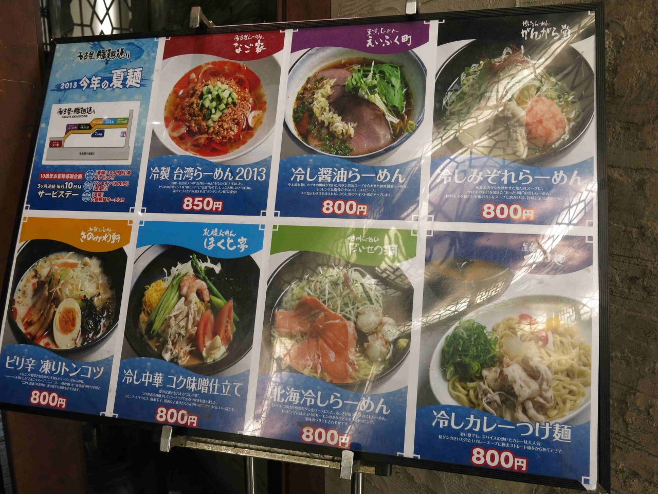 いろんなラーメン家さんが軒を連ねる「ラーメン通り」。名古屋駅コンコース内にあるのでとても便利です。お店が並んでいるのではなく、屋台が並んでいるような雰囲気を感じます。いろんな地方のラーメンが一同に介しているので、食べ歩きに挑戦してみるのもいいでしょうね。(たぶん2~3倍程度が限界だと思いますが・・・)