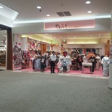 きもののある暮らしをご提案いたしますとの、大正6年創業「きものやまと」がプロデュースする、新しいタイプのセレクトショップがやわらぎです。店内には沢山の着物やたび、バックなどの小物をあります。、きもののお手入れやお直しに関するご相談もやっているそうです。