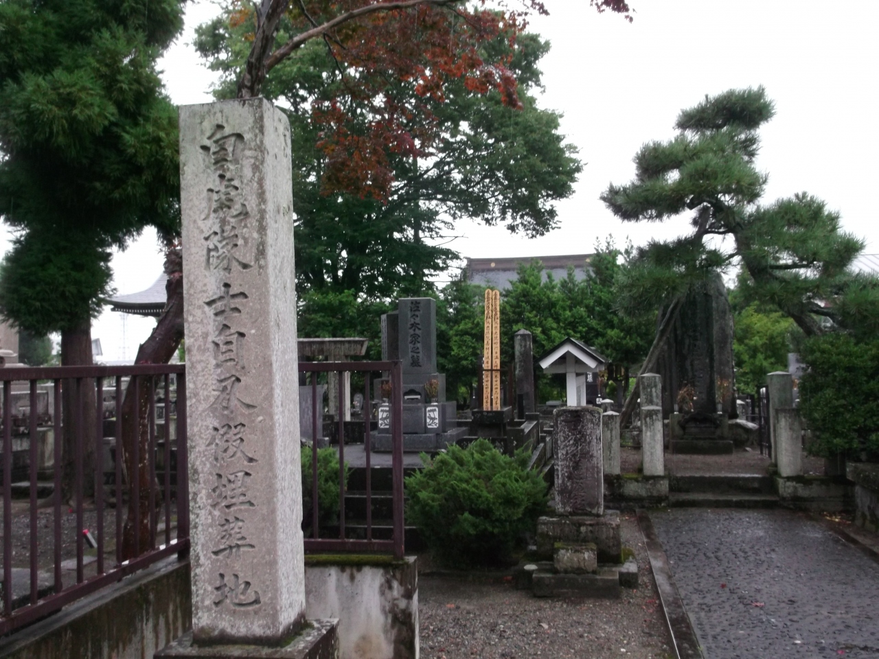 哀れに思った滝沢村の吉田伊惣治が、西軍の目を盗んで最初に埋葬した寺です。