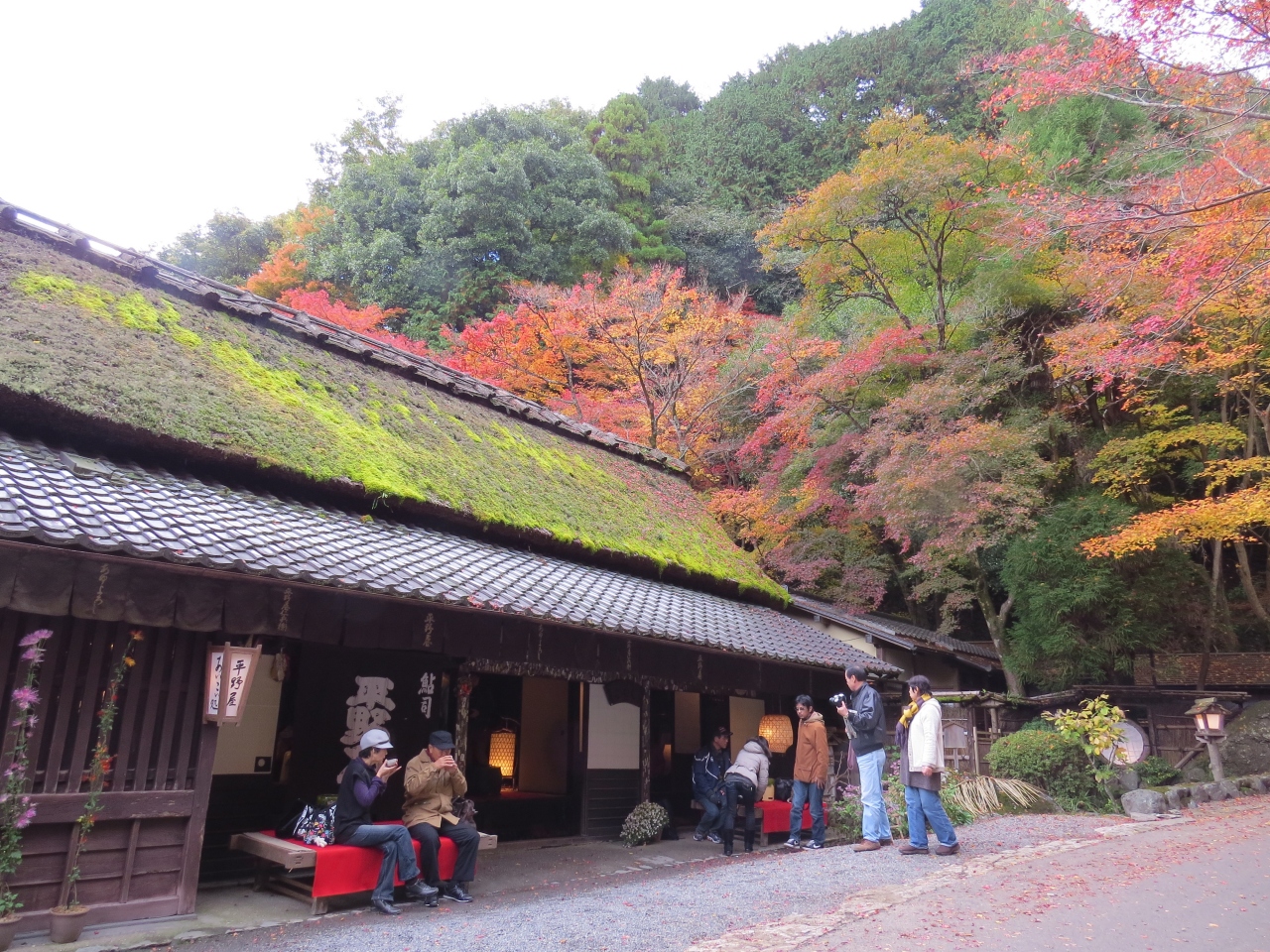 奥嵯峨の鳥居本はちょっと遠いけれど紅葉の時期には時間をかけても訪れるべき場所ですもちろん新緑の時期も綺麗です。化野念仏寺のもっと奥、町並み保存地区に指定されている場所です。この町並みや二軒並んだ鮎茶屋で有名な平野屋やつたやは絶好の撮影スポット。山の近くのせいかもみじの色が格段に赤く濃いような気がします。