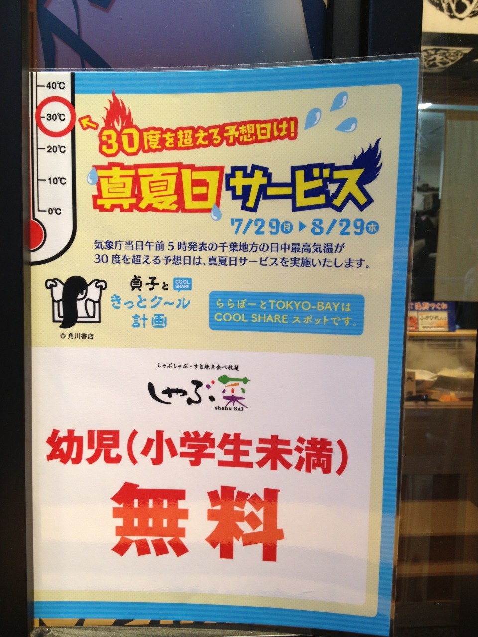 真夏日サービスで幼児無料!