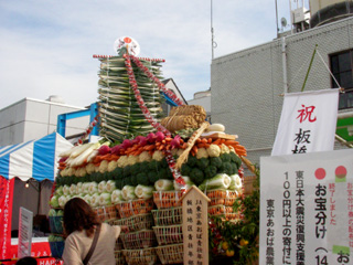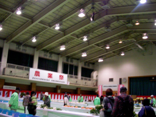 赤塚駅の北口から成増駅との中間にある赤塚体育館に向かうと、通りを通行止めにして農業まつりをやっています。