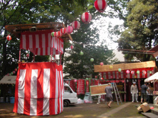 9月は秋祭りの季節で、和田堀公園の横の台地にある成宗白山神社に行ってみると、お祭りの準備中で、夕方からは賑やかになりそうです。蛇行している善福寺川沿いは緑が残っており、時期をずらして各地区で例大祭をやっています。