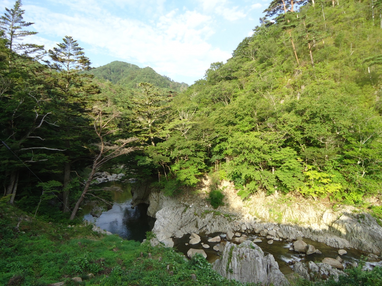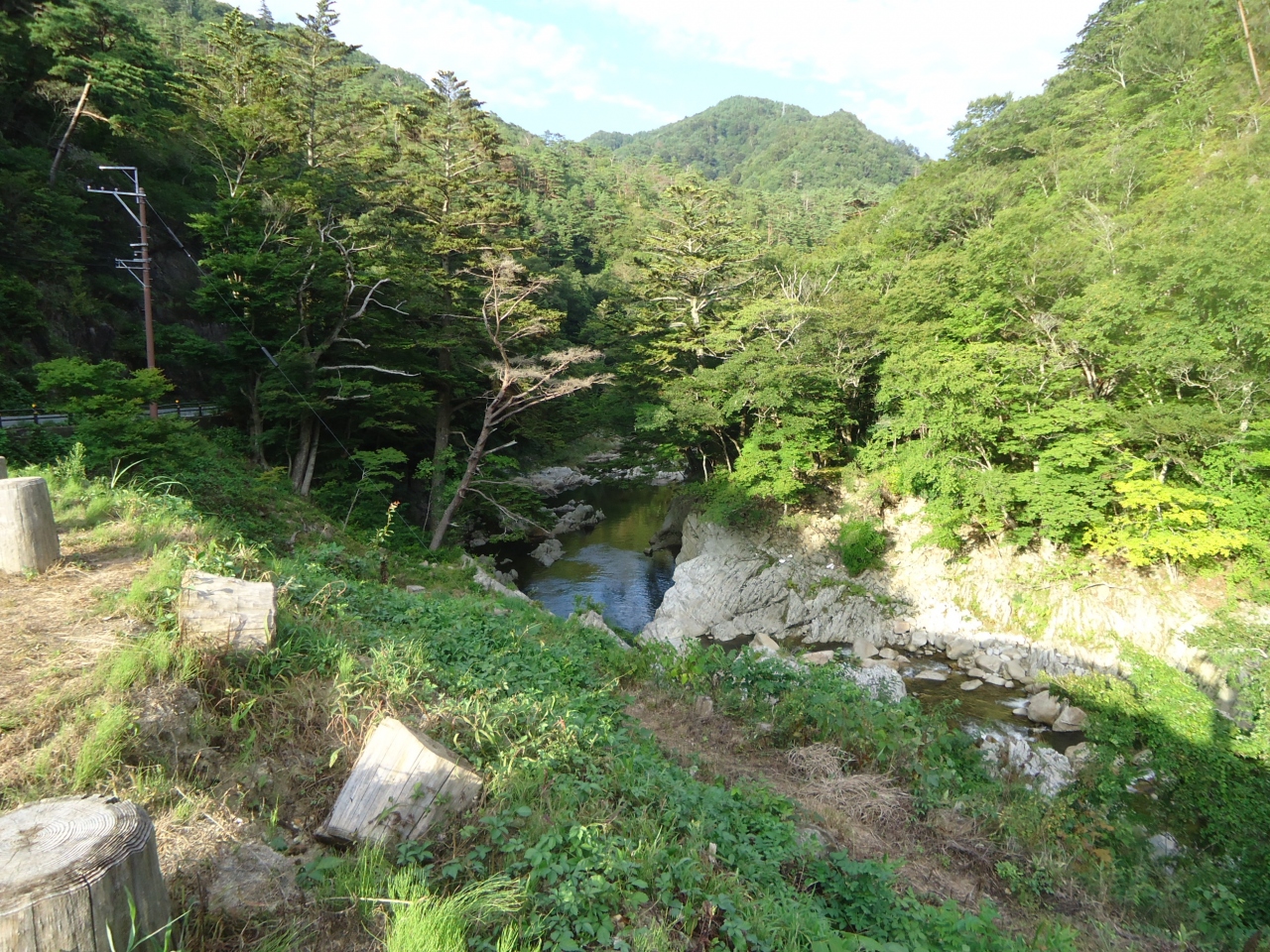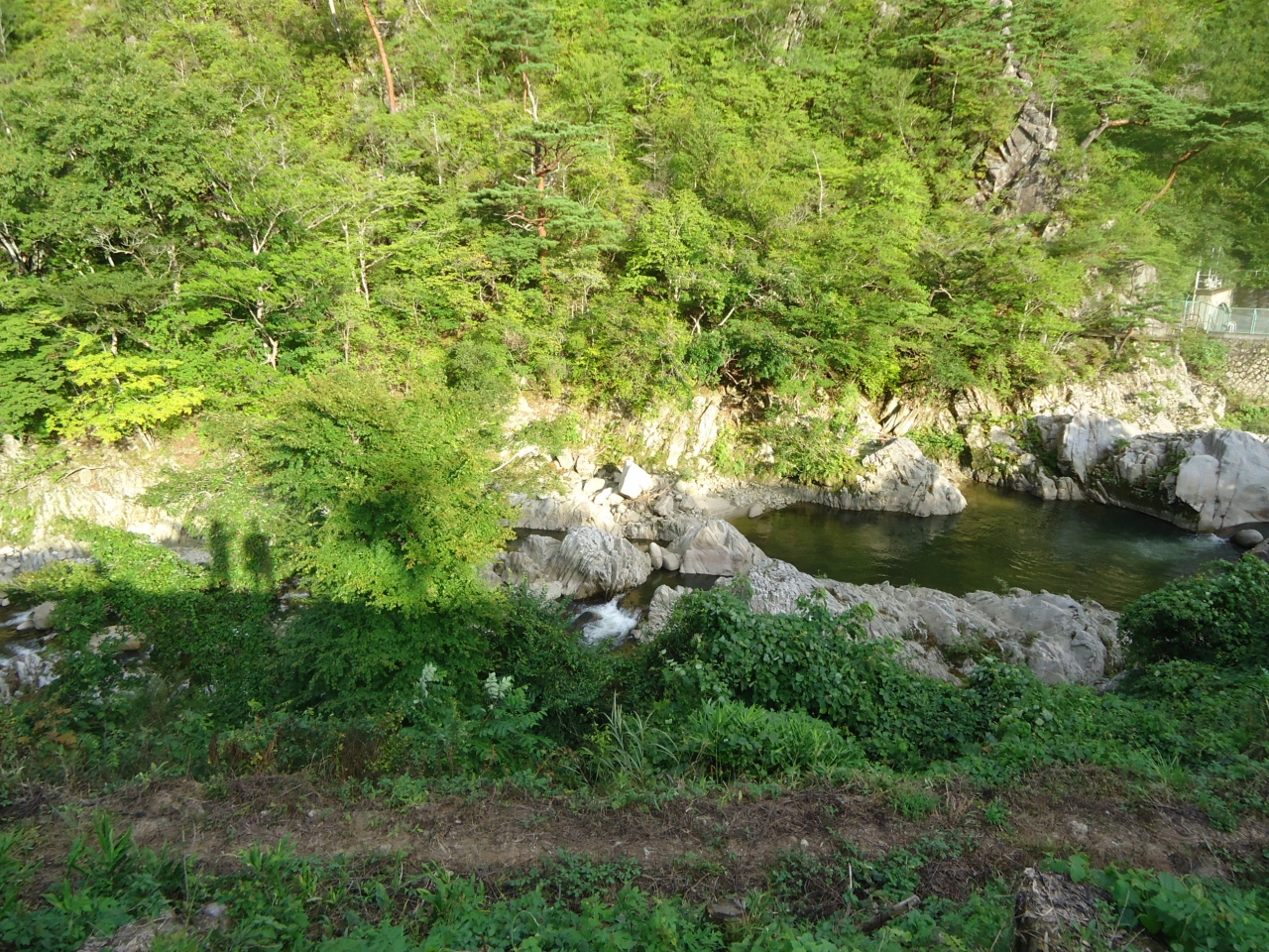 いわきから仙台へ行く途中に夏井川渓谷沿いの道を通って帰りました。道は狭く、曲がりくねっていて頻繁に踏切がある道路を通って行くと「篭場の滝」と看板があり、少し戻って近辺を散策してみました。狭い展望台があり、下をかがみこむようにのぞくと滝のような流れがあり、見事な松の木を眺めたりのんびりしました。ただ道路が狭いので車には注意が必要です。