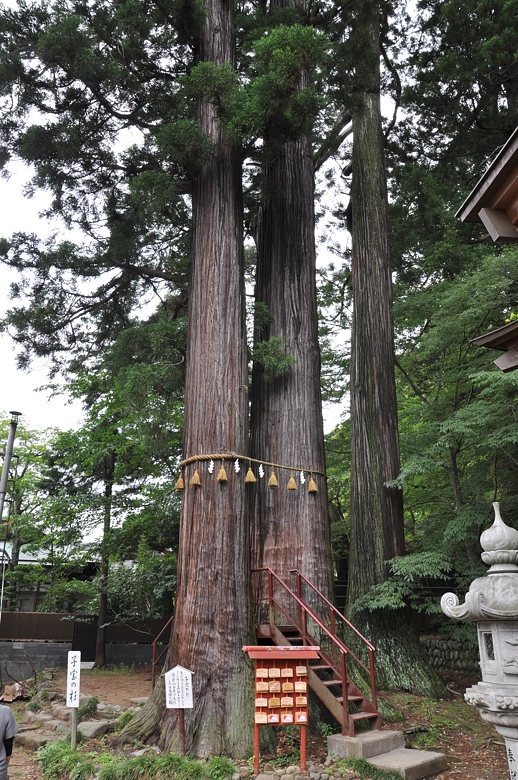 参道の階段を登り始めるとすぐに立派な杉の木がたくさんある。