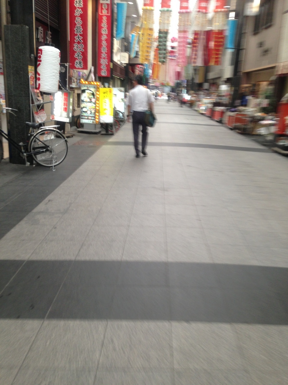 夏休みの平日昼間は人がまばらでした。カラフルな垂れ幕がにぎやかな印象です。