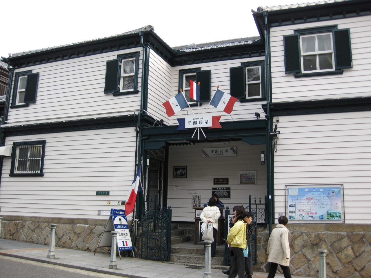 兵庫県神戸市の北野異人館エリアの中にあります。元々この洋館長屋は外国人向けのアパートとして建てられたらしいです。左右対称の建物が特徴的です。現在はフランス館としてフランス関連のモノが展示されています。