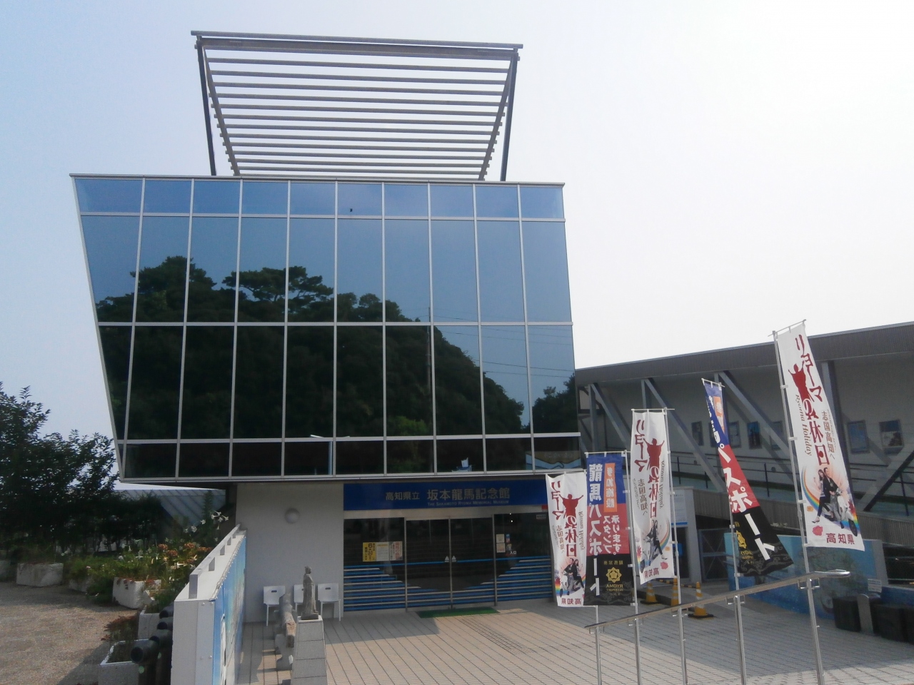 桂浜を見下ろせる高台にありますが、建物は独特な形をしているので、そのインパクトからすぐ分かりますし、入り口付近で坂本龍馬の銅像と握手できます。