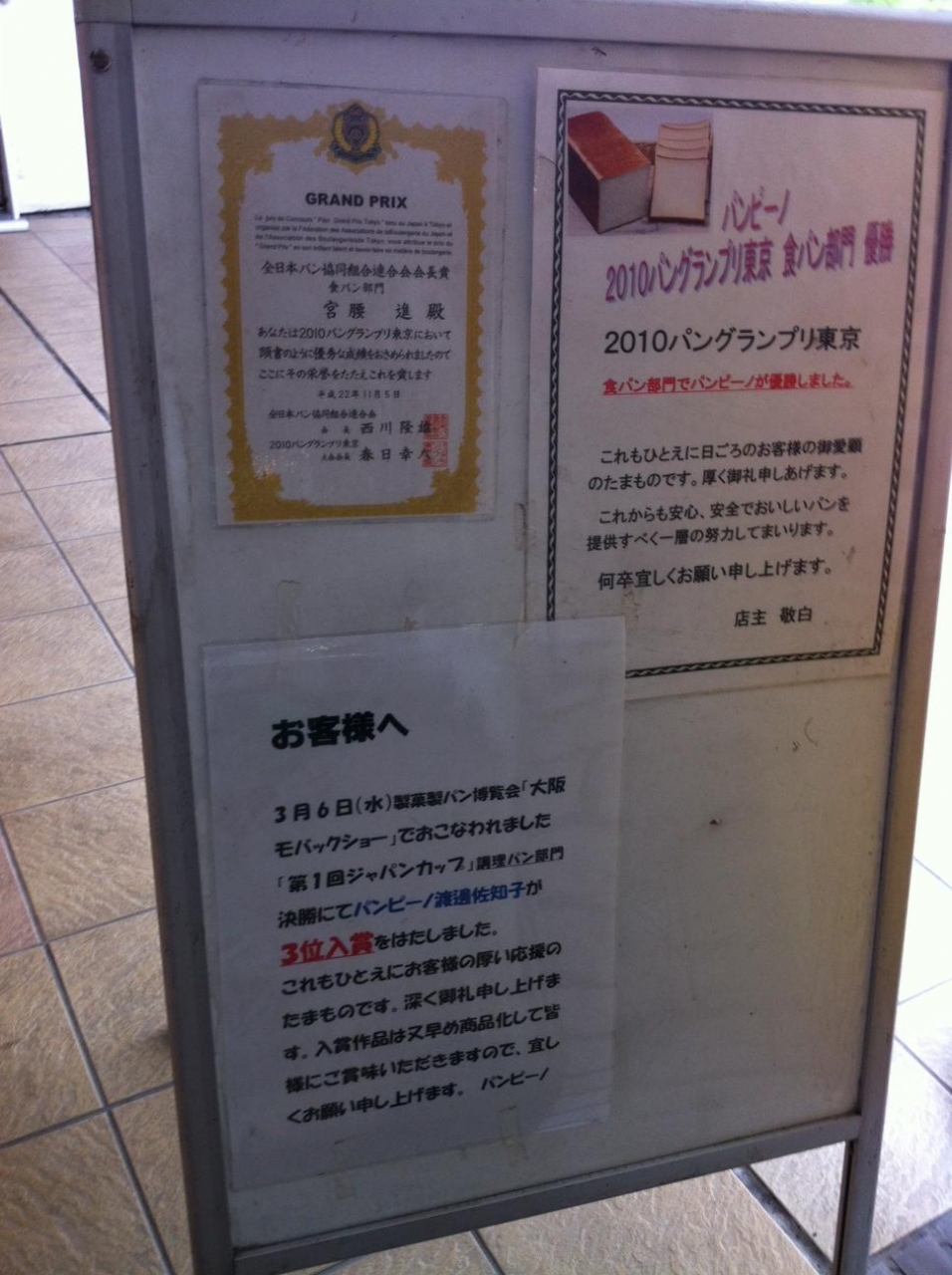 お店の前にいろいろなコンクールの入賞の案内が出てました。