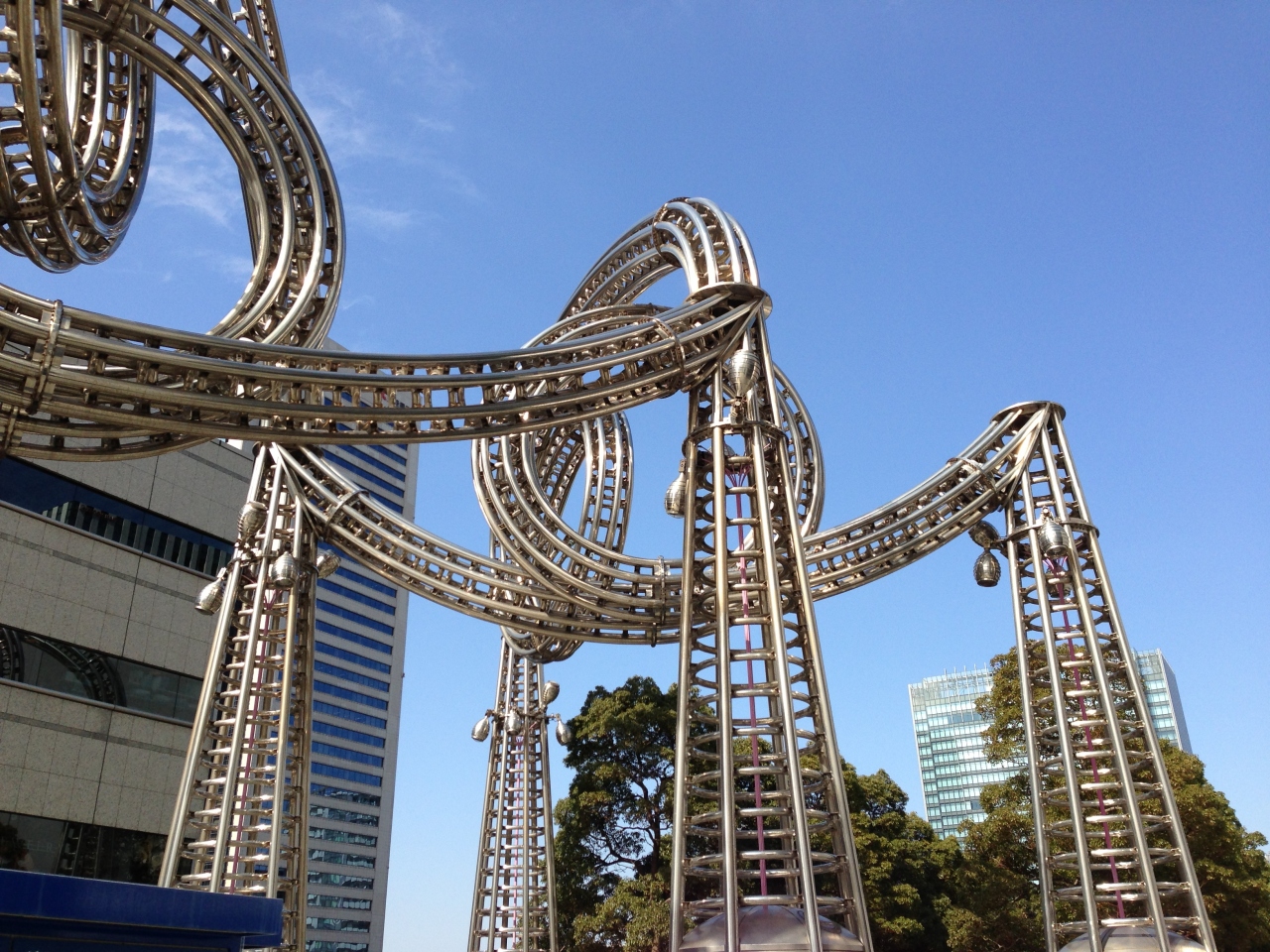 ランドマークとクイーンズスクエアの間にある、金属製の巨大な造形物です。
