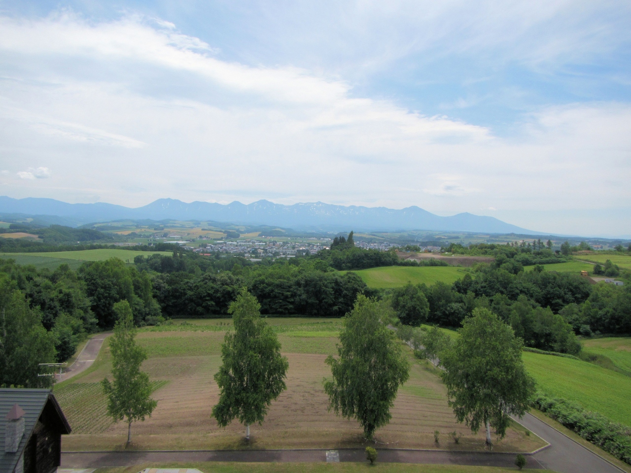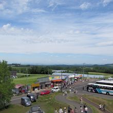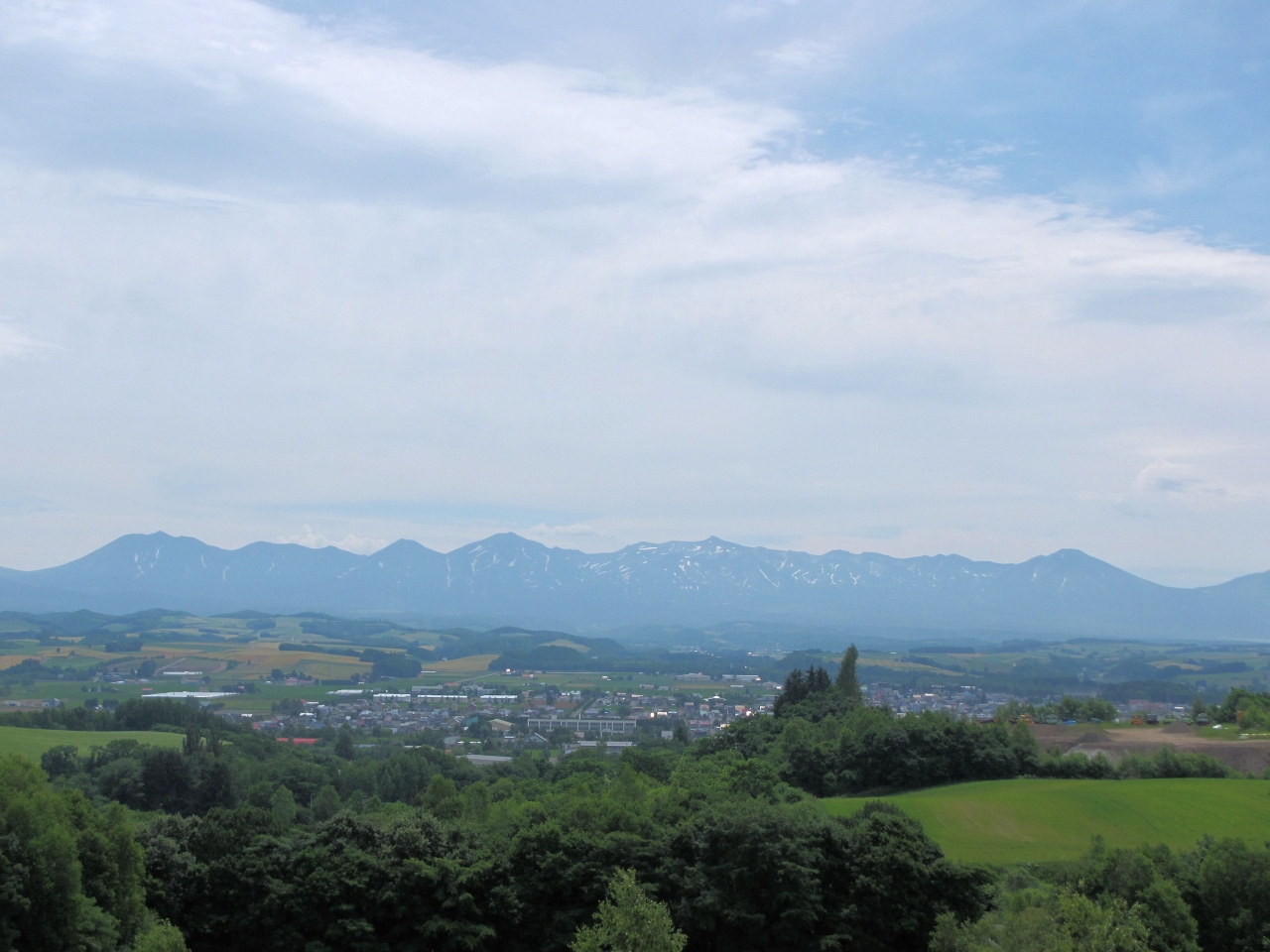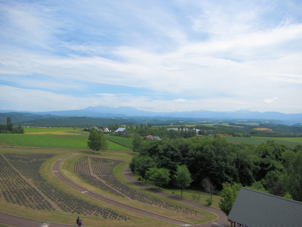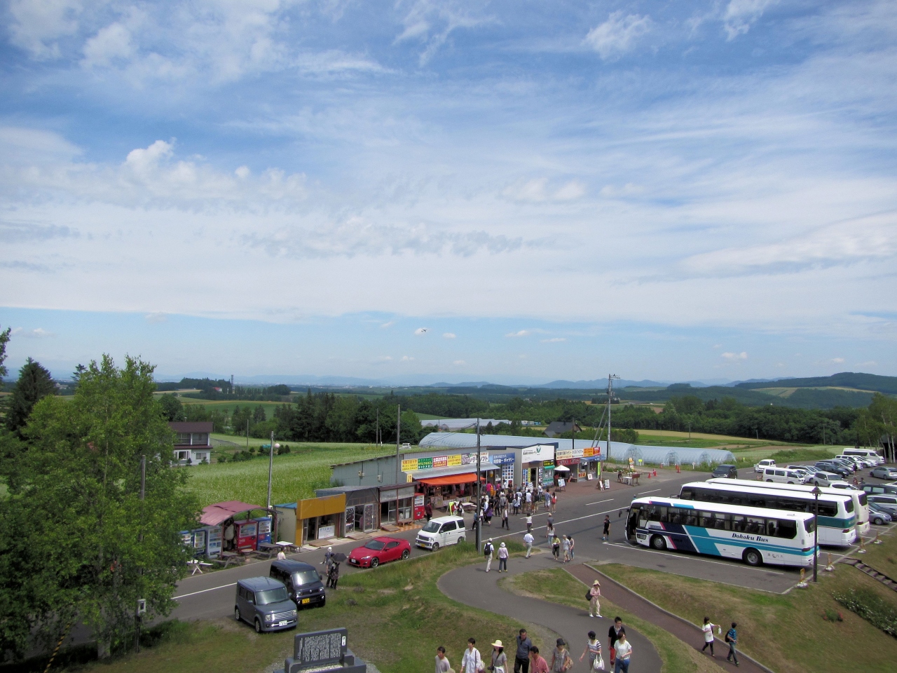 大雪山連峰と、300度くらいの雄大な景色を望めます。360度ではありません。富田ファームのようなお花畑はありません。ラベンダー畑がありましたが、7月ですが、咲いていませんでした。道路沿いには、数件土産物店が出ていました。