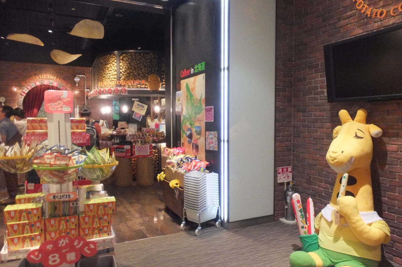 乗り継ぎの時間があると子供たちが新しいプライズが出ていないかとか北海道限定の初音ミクがでていないかと4階のゲームコーナーに行きたがるので、その時は隣のカルビーのショールームを見てのんびりします。中でもお気に入りがきりんです。どうしてきりんなのかわからないのですが、北海道っぽいきりんと勝手に思ってほのぼの見てしまいます。