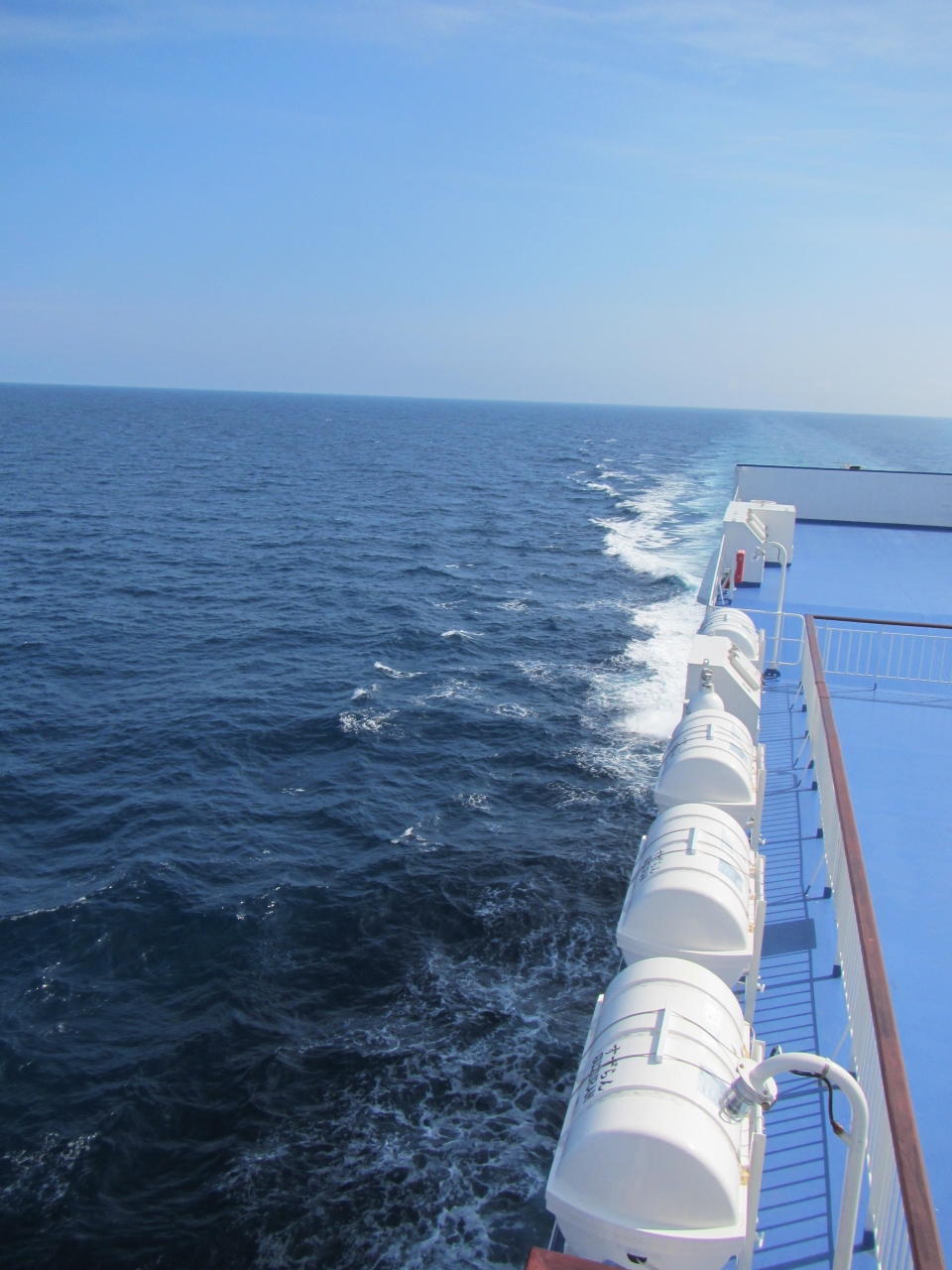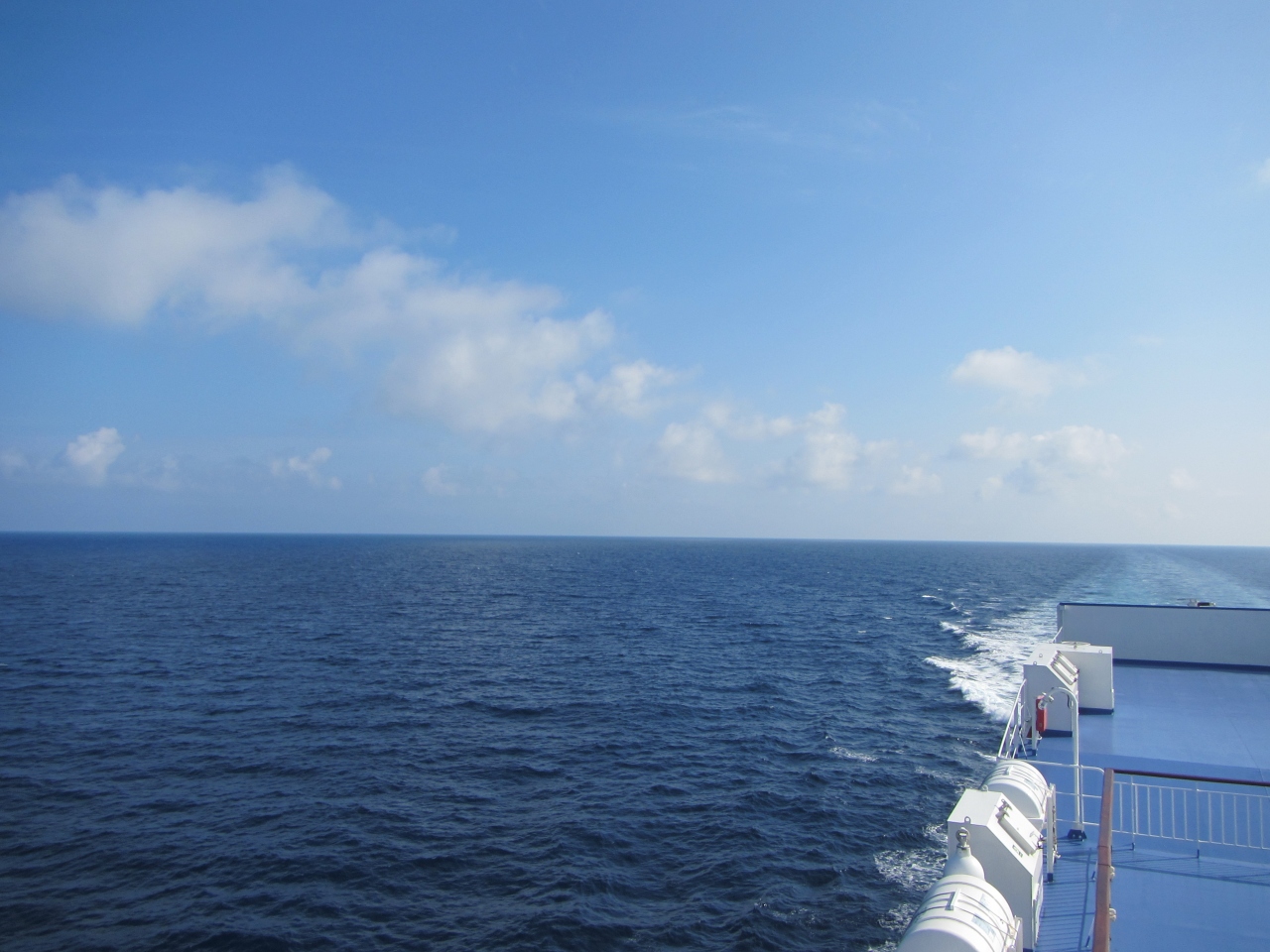 舞鶴−小樽 敦賀−苫小牧 徒歩客の場合両方とも、アクセスの検討が必要です。出航も到着も夜です。最短距離を直線で結ぶ航路を取るので、昼間はほとんど、360度海しか見えません。ツーリストクラスのベッドにも照明の下に、コンセントが付いているので、充電に使えます。これに気づかない人が多いみたいです。