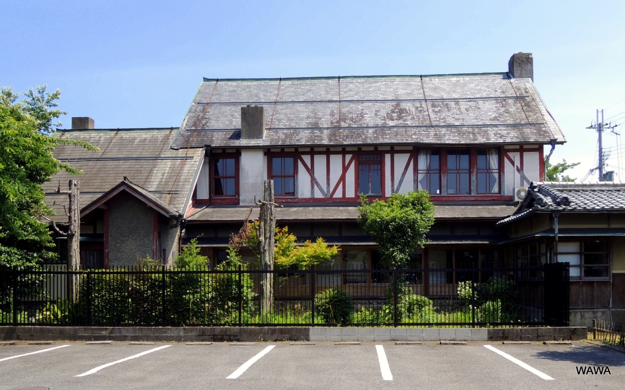 大正2年(1913年)に建築家ウイリアム・メレル・ヴォーリズの設計により、伊庭慎吉の邸宅として建設された和洋式木造住宅。現在は安土町郷土館として活用一般公開されているようですが、訪問時は何の案内も無かったので外からの見学のみとなりました。