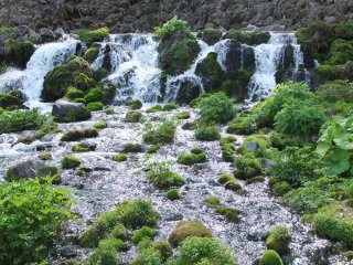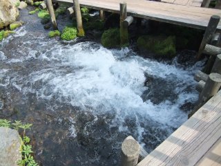 綺麗な水が勢いよく流れ、美しい風景と、音に癒されます。