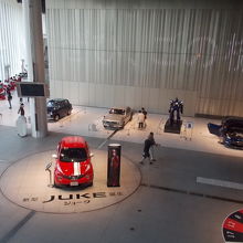 大きな吹き抜けのショールームには、日産車がズラリ(外にもあります)。