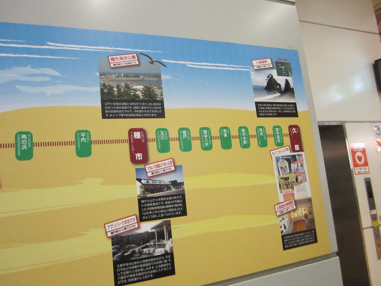 東北新幹線と八戸線、青い森鉄道の接続駅です。駅舎は橋上状なのですが、東北新幹線から在来線に乗り換えると、新幹線の線路が若干高架になっているため、在来線ホームに降りていくエスカレーターがものすごく急になってしまっています。