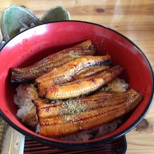 四万十川に行ったら、ここで、天然鰻を食べると楽しみにしていたので、早速、天然鰻丼を注文。約2800円でした。ふっくらとした脂ののった鰻を想像していましたが、天然鰻は、身が引き締まっており、やや固いし、さっぱりとしていました。養殖物もありますので、半分づつ注文したら、比較できて面白いかもしれません。