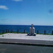 海岸線(道路)にモニュメントが・・記念石碑は別場所に・・