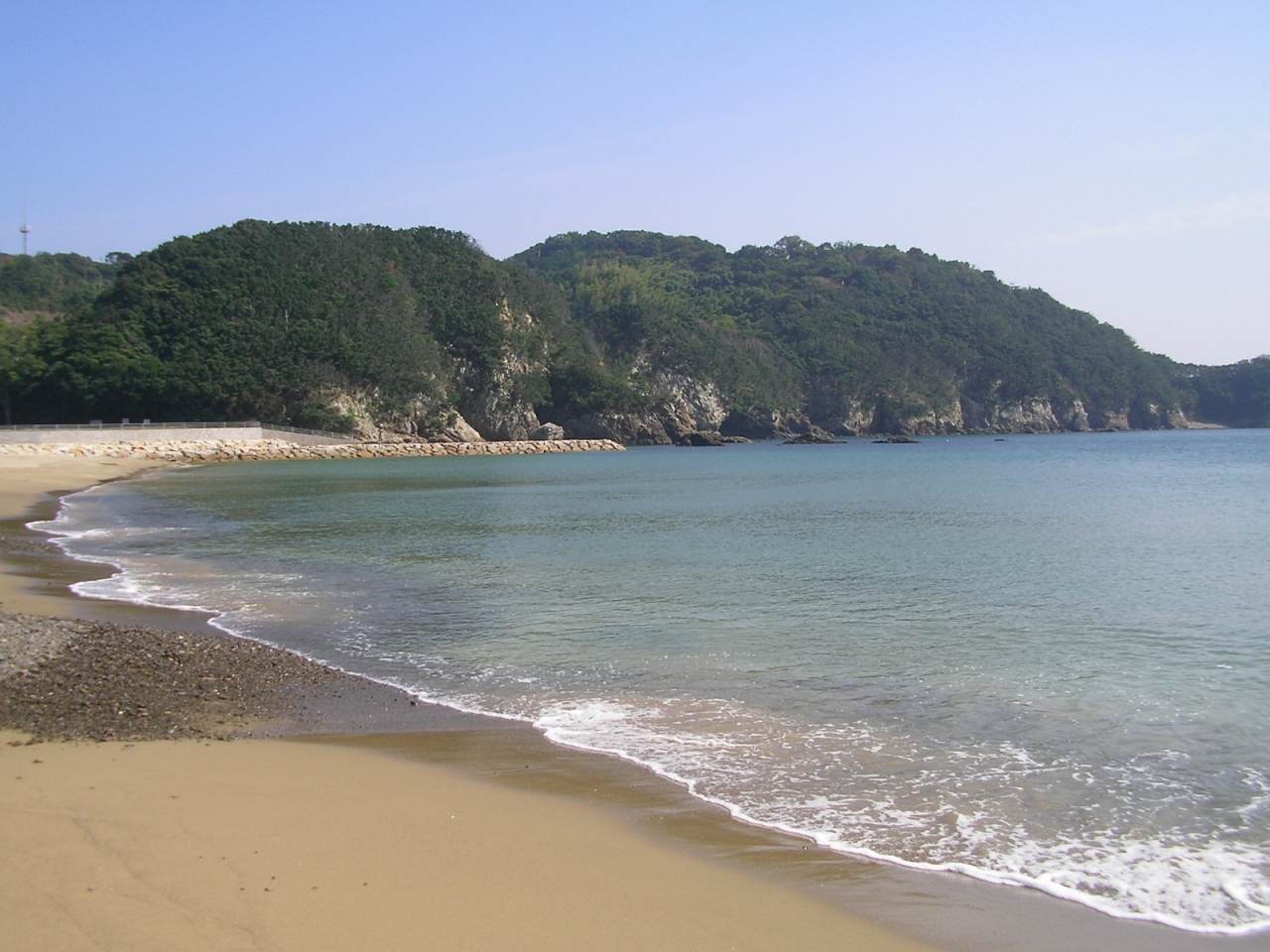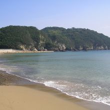 小さな入り江になっていて、長さ約1.0kmにわたる白砂のきれいな海水浴場は遠浅で波も比較的穏やかです。海水浴シーズン中の一部期間には臨時の田井ノ浜駅が開設され、列車から臨時駅に降り立つとすぐに浜辺に行くことが出来ます。脱衣所、シャワー、トイレ、売店、駐車場が完備されています。