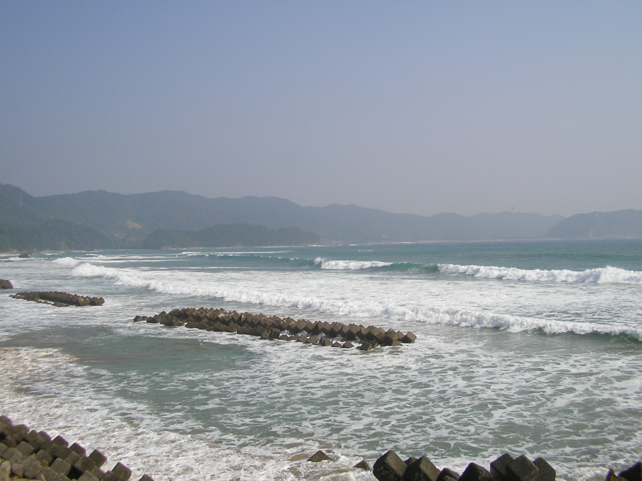 「水床湾」は、阿佐海岸鉄道宍喰駅から車で5分ぐらいのところにあります。四国八十八箇所巡礼で国道55号線を通ったときに寄ってみました。展望台や土産物店があるわけでなく、国道からすぐに見えます。浸触された岩が美しい海岸で四国の松島の名もあるとおり、透明度の高い海と白砂青松の海岸です。コバルトスズメなどの熱帯魚が棲息するダイビングスポットとして知られているそうで、近くには宍喰温泉などもあります。