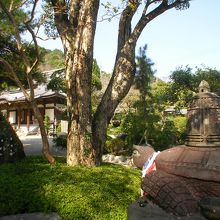 仁王門をくぐった右手に、竜宮城伝説を象徴していると言われる赤い大きな亀が背中に鐘を乗せた像が置かれています。本堂の傍には、大師が“宝医水”と名づけ、眼病にも効くとされる“眼洗い井戸”があり眼の周りをした浸しているお遍路さんを見かけました。