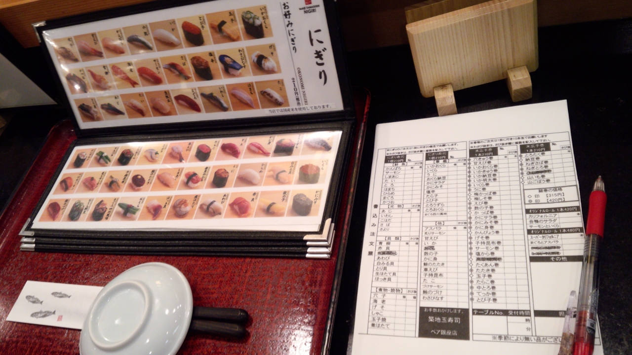 お寿司は食べたい物を伝票に書いてオーダーするタイプ。