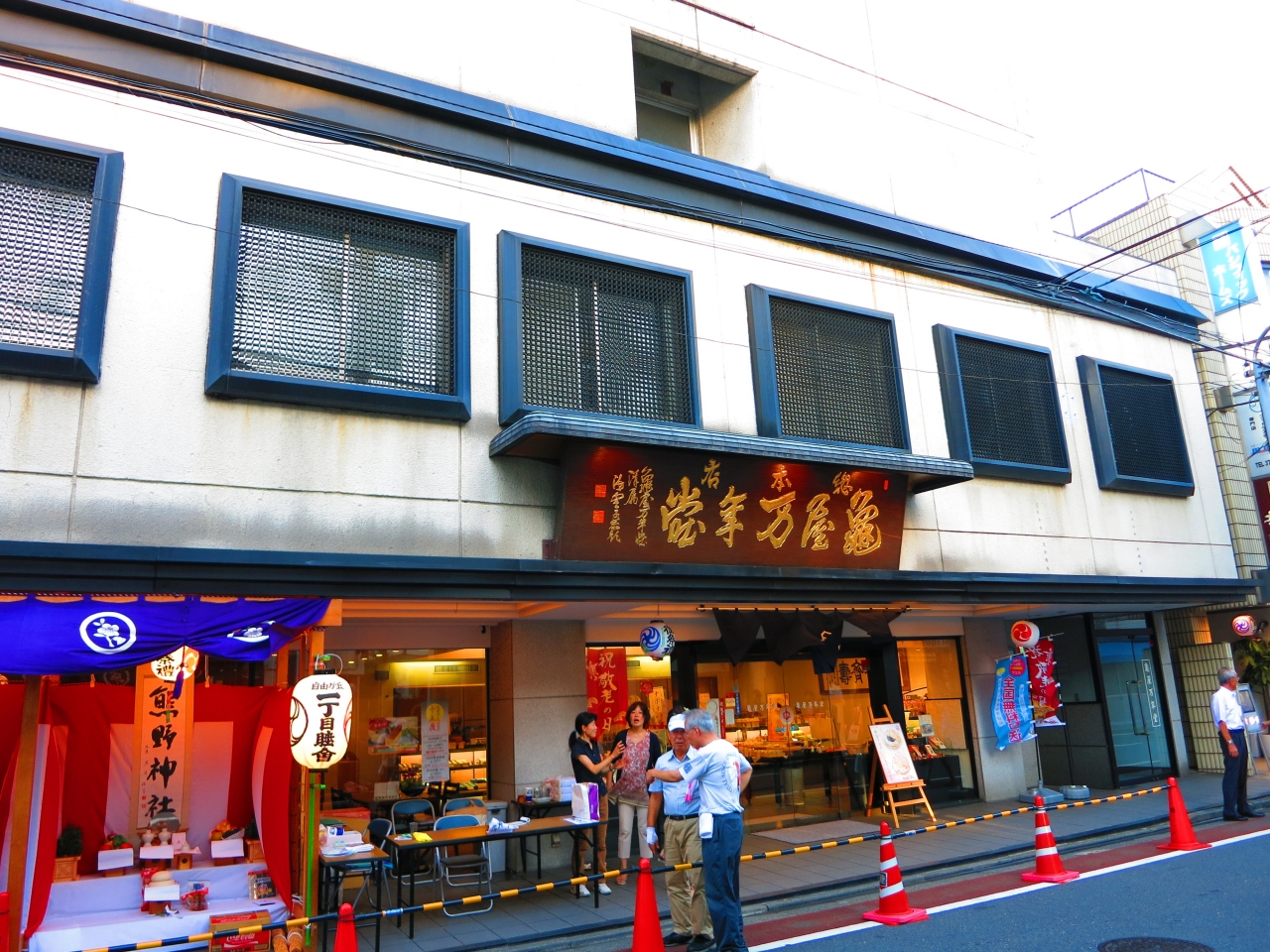 お菓子のホームラン王ナボナで有名な亀屋万年堂の本店がここです。自由が丘駅北口のロータリーから自由が丘デパート、ヒカリ街を抜けた所にあります。普段は静かな店ですが、行った日は熊野神社の大祭で非常に混んでいました。駅前ロータリーにも支店があります。