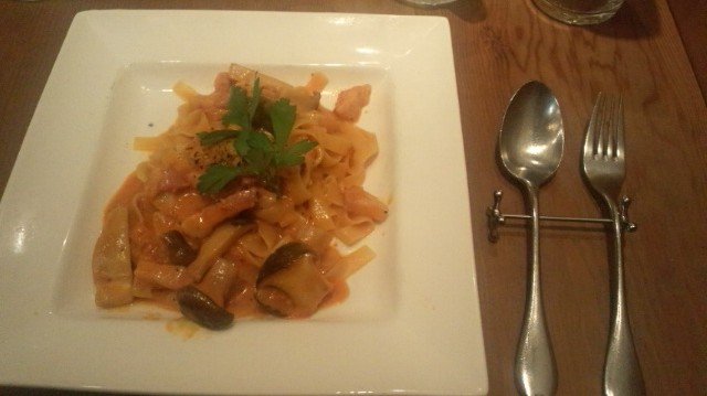 私が注文したのは、エリンギ・パンチェッタのトマトクリームパスタです。 駅から直結で便利なのでまた来たいと思います。