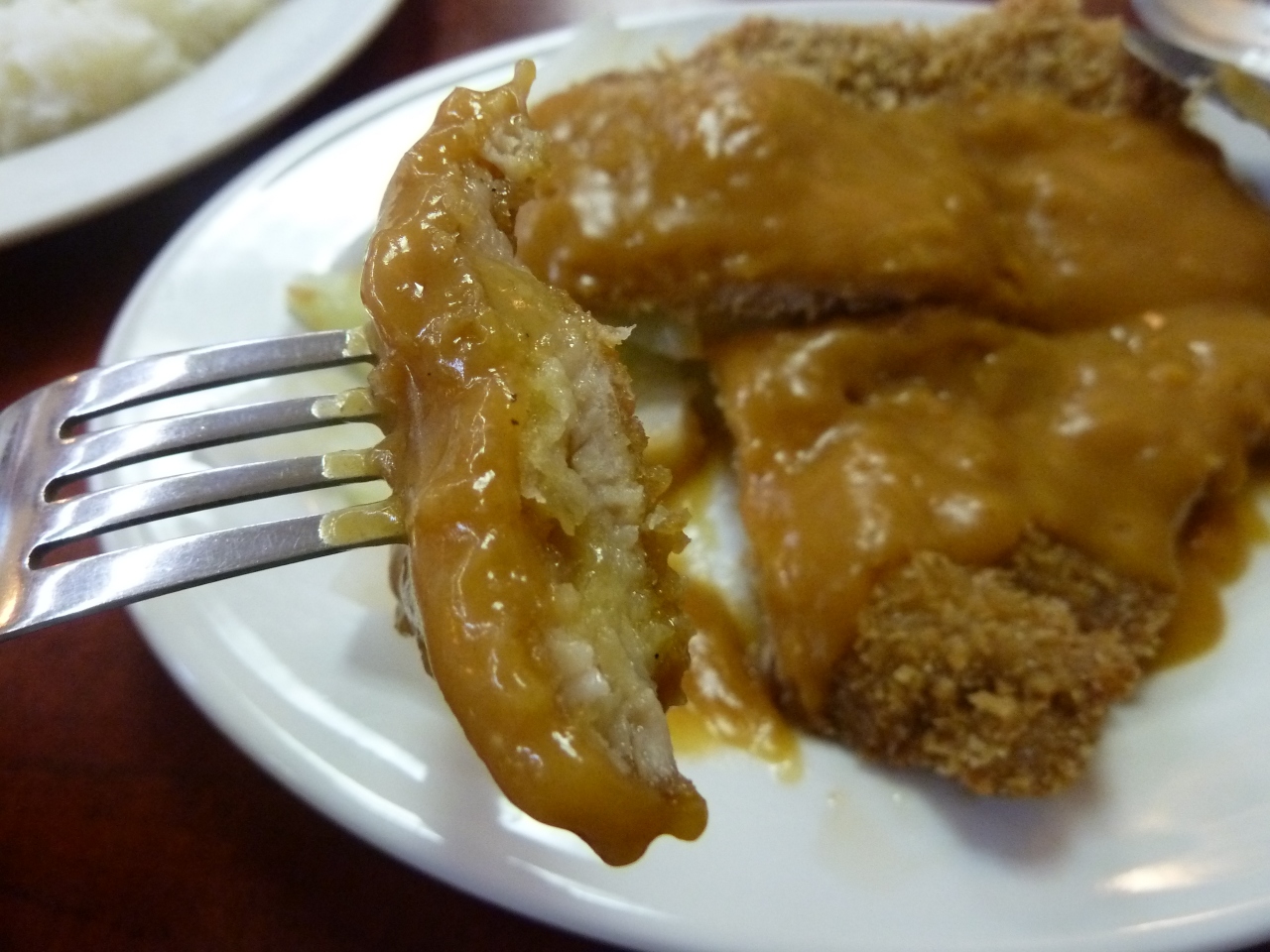 とんかつの上にはたっぷりと甘めのデミソースがかかっています。