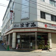 入口が若干見えづらいですが、精肉店のすぐ右側にあります。